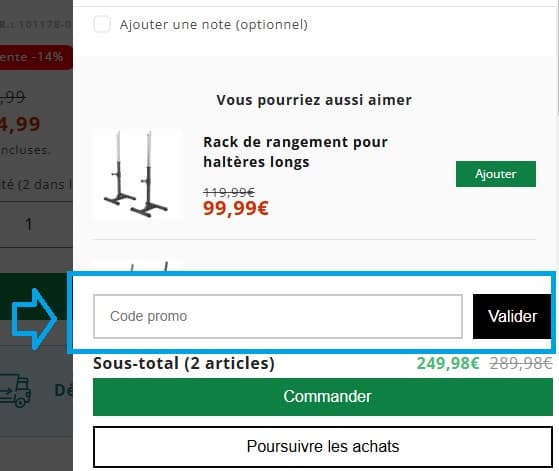 - Au moment de la validation de la commande, repérez le champ dédié aux codes promotionnels.