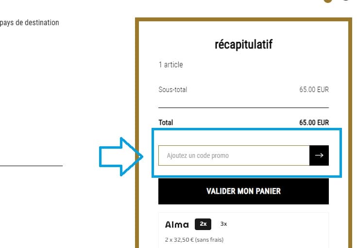 - Et avant de finaliser votre commande, collez votre bon de réduction Hipanema dans le case dédiée à ce dernier.