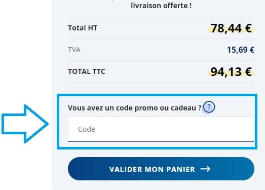 - Dans votre panier, repérez la case dédiée au code avantage intitulée "Vous avez un code promo ou cadeau ?".