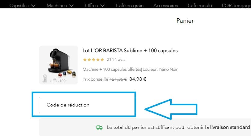 Vous souhaitez profiter de bonnes affaires lors de vos achats en ligne de produits L'OR Espresso en utilisant un code de réduction, voici le processus à suivre :