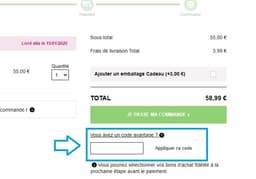 - Une case apparaîtra, vous permettant d'insérer votre code promo Lemon Curve. Mettez dans cette case votre code de réduction Lemon Curve et validez-le en cliquant sur "Appliquer ce code".