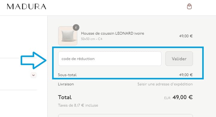 - Ensuite, mettez votre code promo Madura dans cet espace.
