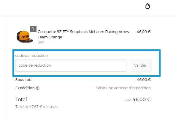 - Cliquez sur “Valider” pour appliquer la réduction à votre panier, puis vérifiez que le montant total a bien été ajusté avant de finaliser votre achat.