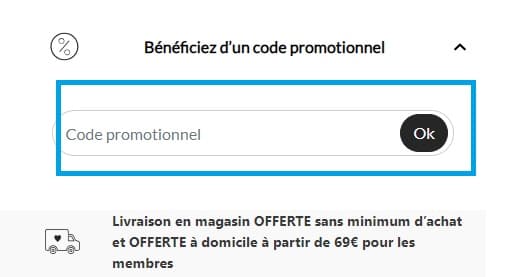 - Ensuite, repérez le champ intitulé “Bénéficiez d'un code promotionnel ?” et cliquez dessus pour faire apparaître la case réservée aux codes de réduction. Saisissez votre code promo Orchestra dans ce champ.