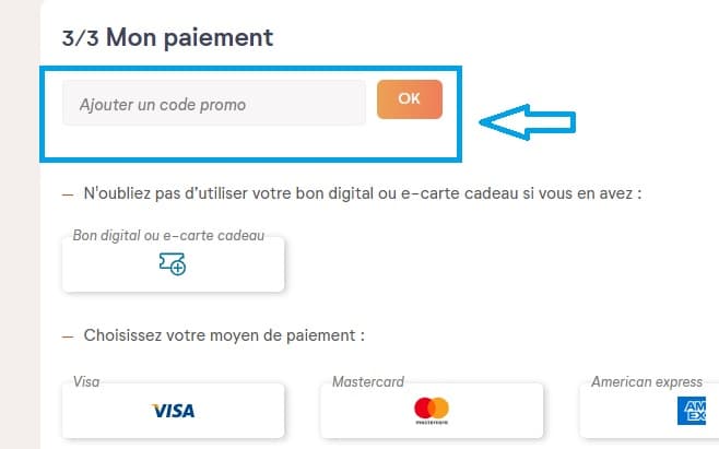 - Avant de procéder au paiement, trouvez la case "Ajouter un code promo". Saisissez votre code de réduction Pierre & Vacances dans cet espace et cliquez sur "OK". La réduction ou l'avantage devrait être automatiquement appliqué à votre panier.