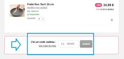 - Dans l’espace réservé au code avantage, nommé : “J'ai un code cadeau”, entrez votre code promo Temps L et cliquez sur "Appliquer".