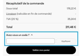 - Entrez votre code de réduction Vistaprint dans ce champ et validez-le.