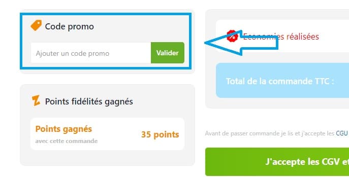 - Ensuite, cliquez sur "Valider" pour voir la réduction s’appliquer à votre commande.