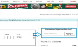 - Avant de finaliser votre achat, localisez le champ intitulé “Avez-vous un coupon de réduction ?”. Entrez votre code de réduction Animalis dans cette case et cliquez sur “Appliquer” pour activer la réduction.