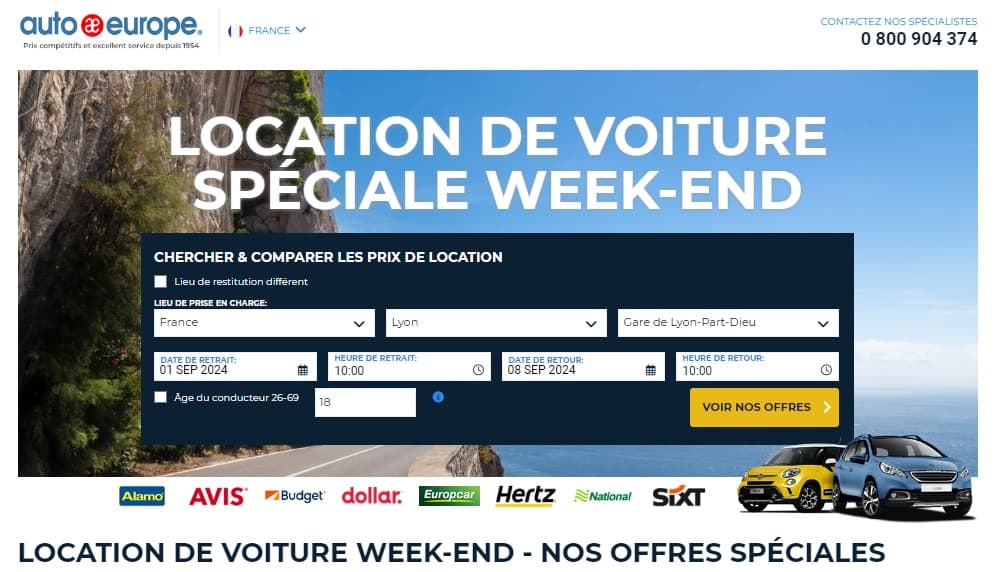- Profitez de l'offre “ Location de voiture spéciale week-end : Auto Europe vous propose une offre spéciale week-end pour vos locations de voiture. Que ce soit pour une escapade rapide ou un séjour prolongé, bénéficiez de tarifs avantageux et d'une large sélection de véhicules. Grâce à leurs partenariats avec des loueurs de renommée mondiale, trouvez la voiture idéale pour votre week-end et faites des économies en réservant dès maintenant.