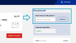 - Sur la page de validation de commande, repérez le champ “Avez-vous un code promo ? et collez votre code promo Autodistribution dans cette section, puis appliquez-le pour voir la réduction s’afficher automatiquement sur le total de votre panier.