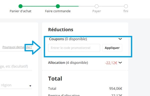 - Au moment de consulter votre panier, repérez le champ “Entrer le code promotionnel”.
