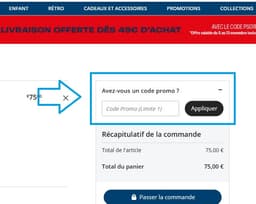 - Ensuite, allez dans votre panier et cherchez le champ intitulé ”Avez-vous un code promo ?”et entrez votre code de réduction PSG Online Store dans cet espace.