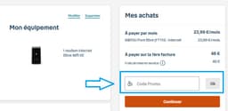 - Lorsque vous êtes sur la page de votre panier, cherchez l’option "Code promo " et entrez le code avantage Bouygues Telecom dans ce champ.