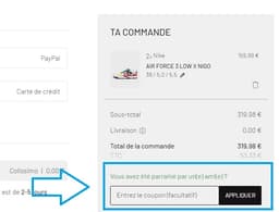 - Ensuite, repérez le champ “Entrez le coupon” et ajoutez votre code promotionnel BSTN.