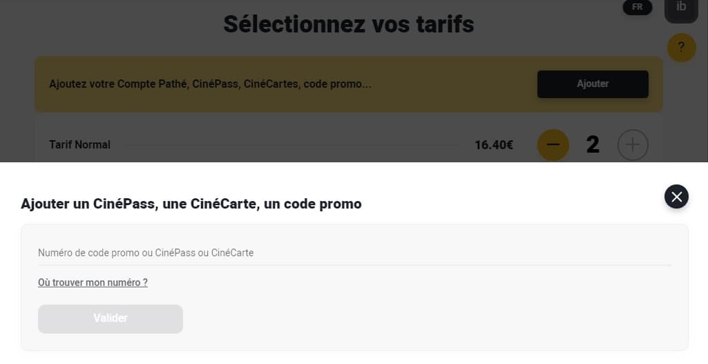 Commencez par copier le code promo Ciné Pathé de votre choix. Ensuite, procédez à la réservation de votre billet. Lors de l'étape de sélection des sièges, vous pouvez ajouter votre code de réduction en sélectionnant simplement l'option "Ajouter". Collez ensuite votre code dans la case "Numéro de code promo ou CinéPass ou CinéCarte", située sous le tableau des tarifs, puis validez l'application du code promotionnel en cliquant sur "Valider". Vous verrez alors votre avantage promotionnel s'appliquer instantanément, réduisant le montant total de votre réservation.