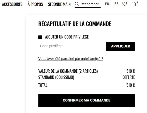 - Et avant de valider votre achat, collez votre code de réduction sur le champ “Ajouter un code privilège".