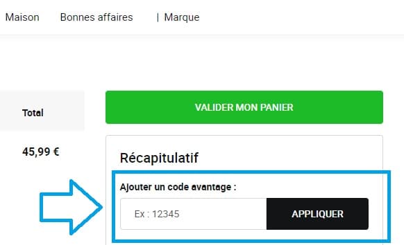 - Après, repérez le champ intitulé “Ajouter un code avantage” et insérez votre code promo DAMART dans cet espace avant de l’appliquer.