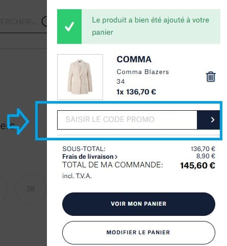 • Puis, saisissez votre code de réduction En Vogue dans la case : “Saisir le code promo”.