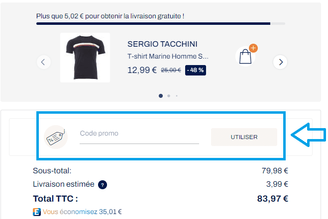 - Et avant de valider votre commande, repérez la case "Code promo" sur la page de votre panier.