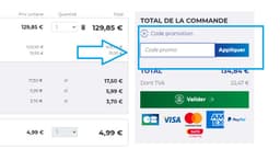 - Dans la section de votre panier, cherchez la case Intitulé “Code promotion”