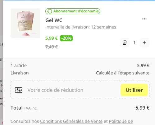 - Puis, ajoutez à votre panier les produits everdrop que vous souhaitez commander, qu'il s'agisse de tablettes de lave-vaisselle, de lessives ou d'autres produits. Lorsque vous êtes prêt à finaliser votre commande, accédez à votre panier.
