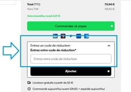 - Puis validez-le en cliquant sur le bouton “Ajouter”. Assurez-vous que la réduction est bien appliquée en vérifiant le montant total de votre commande.