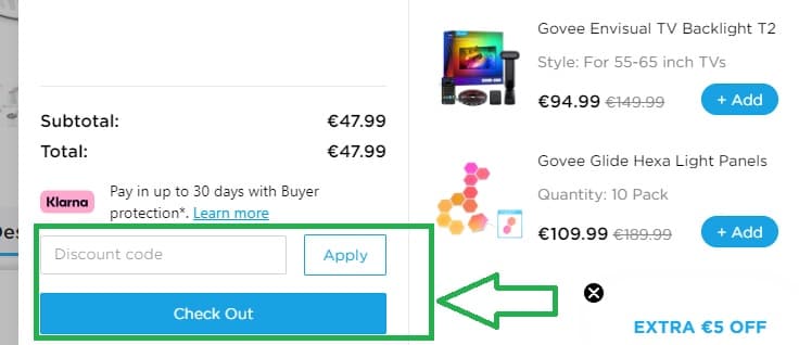 - Ensuite, cherchez l’option “Discount code" et mettez code avantage Govee dans cette case.