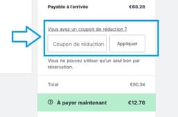 - Ensuite, recherchez la case dédiée intitulée “Vous avez un coupon de réduction ?” et mettez votre code promo Hostelworld dans cette case.