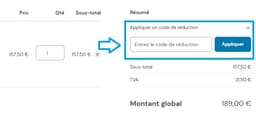 - Puis, accédez à la page de récapitulatif de la commande et recherchez le champ intitulé “Appliquer un code de réduction”.