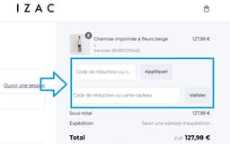 - Avant de valider votre achat, repérez le champ dédié aux codes promotionnels intitulé "Code de réduction ou carte cadeau". Entrez votre code promo IZAC dans cette case.