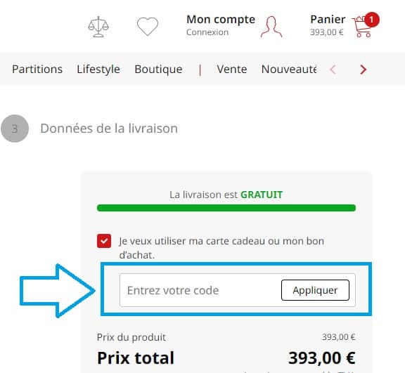 - Avant de finaliser votre paiement, vérifiez que votre code de réduction Kytary.fr a bien été appliqué à votre commande.