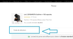 - Entrez votre code promotionnel L'OR Espresso dans ce champ et validez-le.