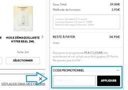 - Avant de finaliser votre commande, cherchez le champ intitulé “Code promotionnel” et saisissez votre code promo Mac Cosmetics dans cet espace.