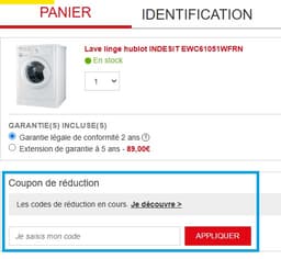 - Puis, repérez l’espace “Coupon de réduction” et mettez dans cette case votre code promo MDA électroménager .