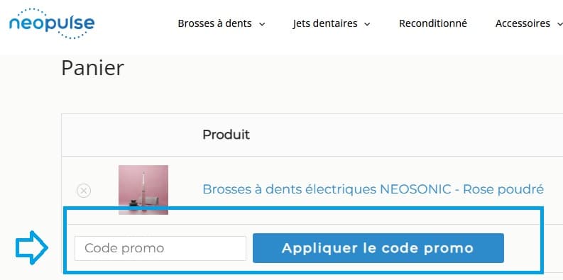 - Ensuite, entrez votre bon de réduction NEOPULSE dans le champ “Code promo” et cliquez sur "Appliquer le code promo".