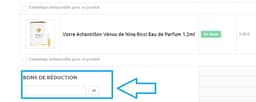 - Cliquez ensuite sur "Commander" pour voir votre sélection. Repérez le champ réservé à l’ajout d’un code avantage nommé “Bons de réduction”.