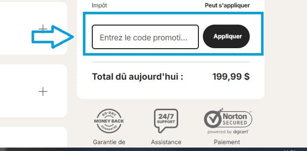 - Entrez votre code promo Norton dans cet espace et cliquez sur "Appliquer". Vérifiez que la remise a bien été appliquée avant de procéder au paiement sécurisé.