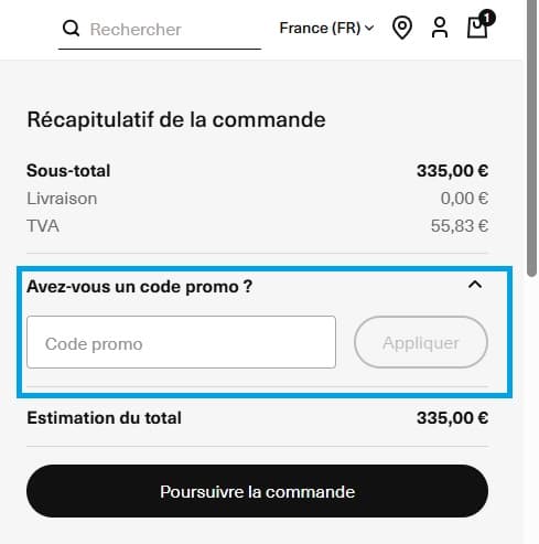 - La réduction s’affiche automatiquement sur le montant total de votre commande.