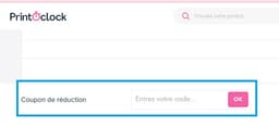 - Ensuite, accédez à votre panier pour finaliser la commande. Avant de procéder au règlement, recherchez la section dédiée aux codes avantages. Entrez votre code promo PrintOclock dans la case intitulée "Coupon de réduction".