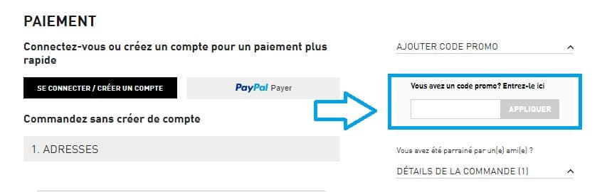 - Sur la page de paiement, repérez la case intitulée "Vous avez un code promo ? Entrez-le ici". Saisissez votre code de réduction PUMA dans cet espace et cliquez sur "Appliquer" pour que votre code avantage soit pris en compte.