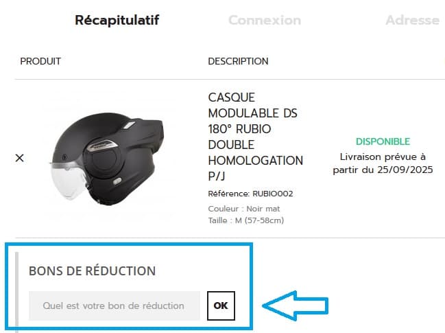 En suivant ces étapes, vous pouvez utiliser en toute facilité votre code promo Scooteo et faire des économies sur des casques moto, des équipements scooter et des pièces détachées moto.