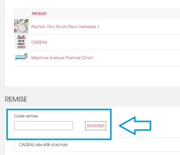 - Insérez-y votre code de réduction Scrapmalin puis validez.