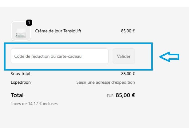 - Ensuite, entrez votre code promo Seasonly dans le champ “Code de réduction ou carte-cadeau”