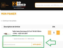 - Avant de finaliser votre achat, repérez le champ : "Code promotionnel ?" sur la page de votre panier et mettez votre code promo Sobrico dans cet espace.
