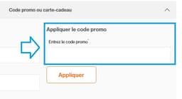 - Ensuite, repérez le champ intitulé “Appliquer le code promo” et insérez votre code promo Superdry dans cet espace.