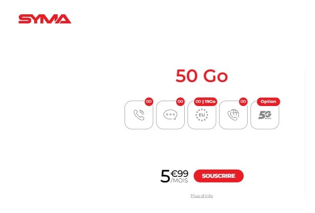 Le nouveau forfait Le cinq 50Go à seulement 5,99€ chez Syma Mobile
