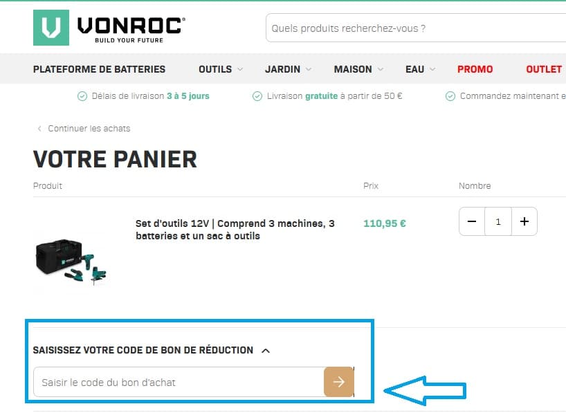 ASTUCE ACHAT FUTÉ ! La livraison est OFFERTE sans code promo Vonroc