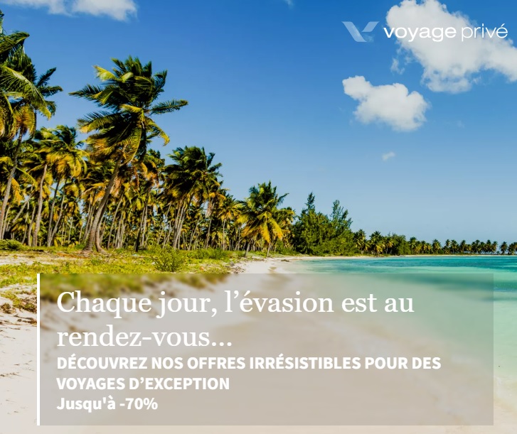 Fondé en 2006, Voyage Privé est le pionnier des ventes privées de voyages en France, et a su s’imposer comme une référence dans le domaine du e-tourisme. Le site propose à ses 44 millions de membres une sélection exclusive de voyages, de séjours haut de gamme et de loisirs de luxe, avec des réductions allant jusqu’à 70%. Chaque jour, Voyage Privé déniche des offres de voyages exceptionnelles pour des vacances uniques, qu’il s’agisse d’un week-end en amoureux, de séjours en famille ou de voyages entre amis, le tout à des prix inégalés.